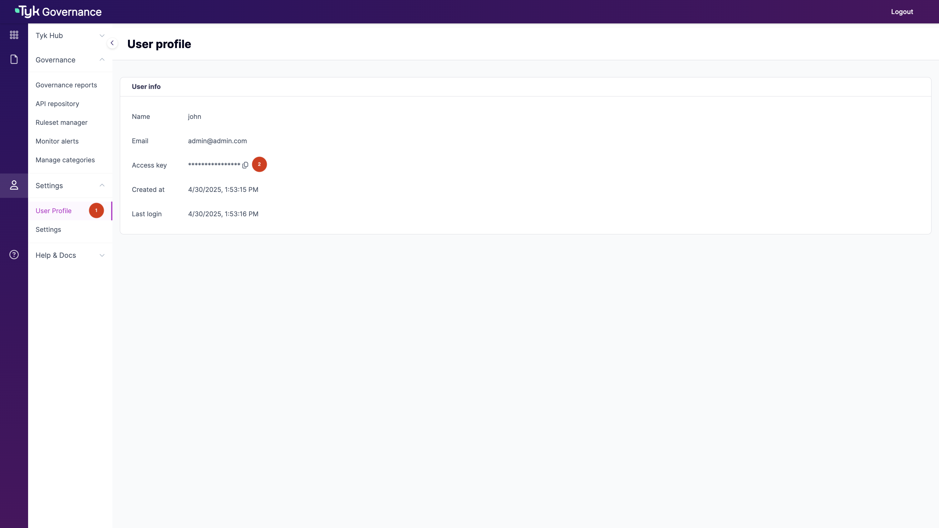 - URL to access the Tyk Governance Hub